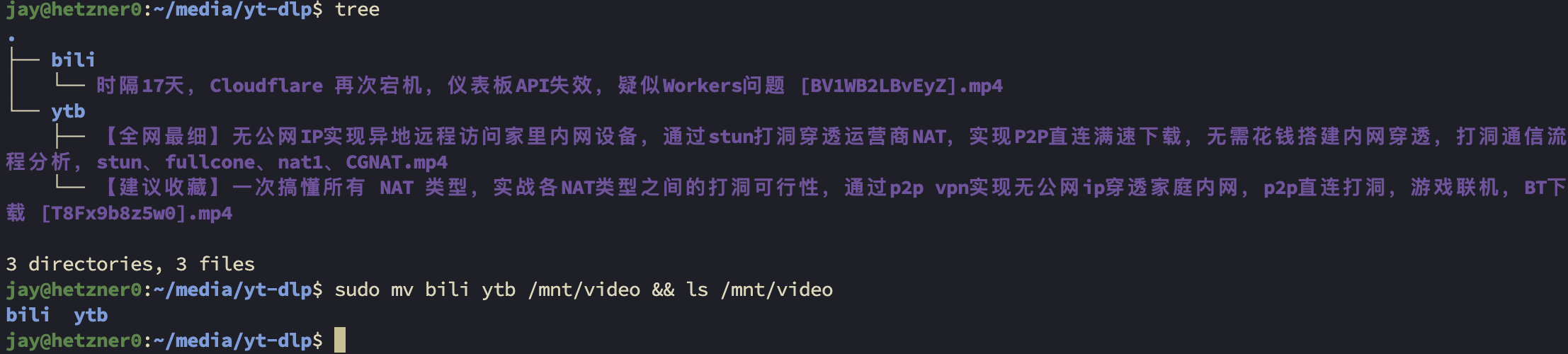 我忘记了我不应该从/mnt/video上传,应该从~/media/yt-dlp上传,然后copy到b2:mount-video然后从/mnt/video tree